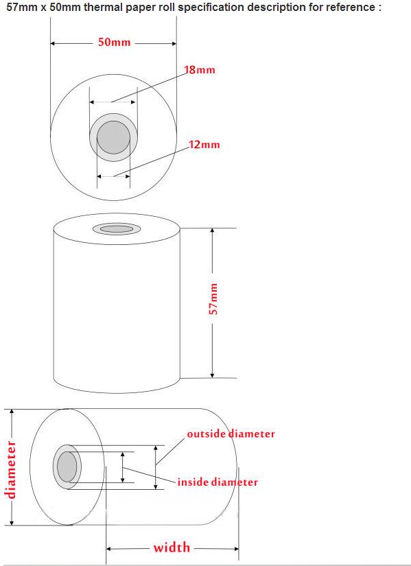 80mm×80mm, 57mm×50mm, 75mm×50mm, 44mm×70mm, 3 1/8’’×220’, 2 1/4’’×85’etc.